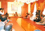 ƒKƒ{ƒ“‚ł̌ߑO‚̹‰ï‚ÍAŠØ‘‚ÅŒ¾‚¦‚Α‰ï‹cŽ–“°‚É‚ ‚½‚é‹c‰ï‚̃Zƒ~ƒi[Žº‚ÅŠJ‚©‚ꂽB­ŠEAŒoÏŠE‚Ȃǂ©‚çƒKƒ{ƒ“ŽÐ‰ï‚ÌŽw“±ŽÒ’B‚ªW‚܂钆Aƒ`ƒ‡[涂̓LƒŠƒXƒg‚Ì’†‚Å–{“–‚ÌŽ©—R‚ðŒ©‚Â‚¯A^‚Ìj•Ÿ‚ðŽó‚¯‚È‚¯‚ê‚΂Ȃç‚È‚¢‚Æ‹­’²‚µ‚½BŠØ‘‚É‹A‘‚µ‚½ŒãAƒKƒ{ƒ“‚©‚ç•ւ肪“Í‚¢‚½Bˆê•”‚Ì­Ž¡‰Æ‚̶‚«•û‚ª‘å‚«‚­•Ï‚í‚Á‚½‚Æ¥¥¥¡